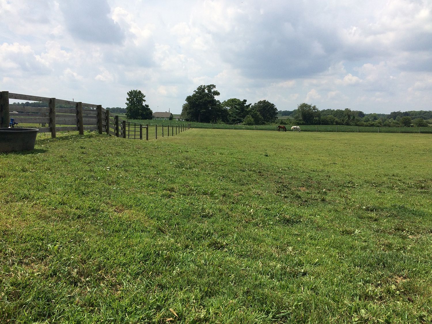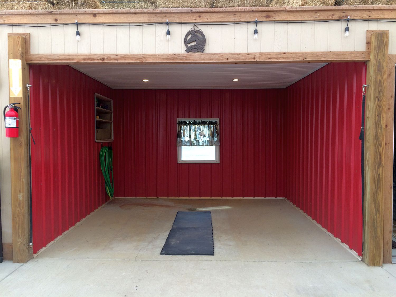 Large turn around driveway, electrical hookups, 10 stalls, fully matted aisleway and stall floors. In-stall bucket hooks.